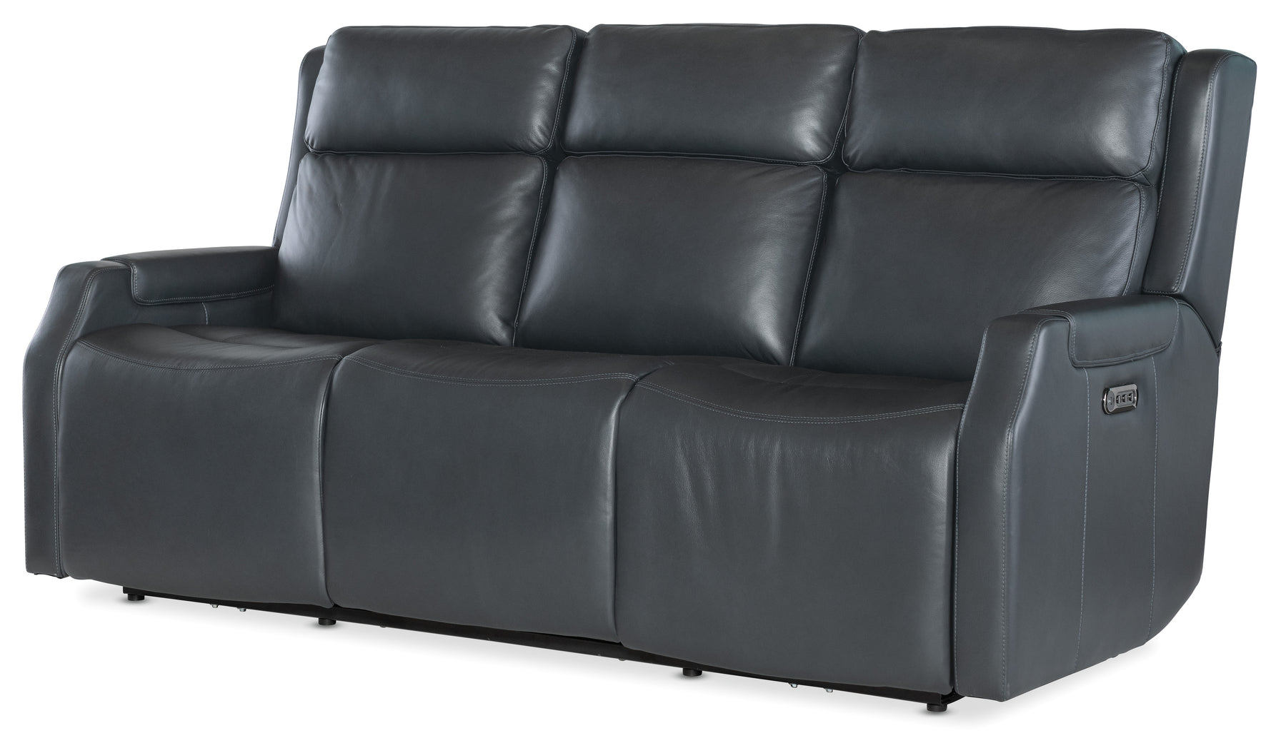 The Nelson Zero Gravity Power Sofa brings luxurious comfort with its zero-gravity recline, power headrests, and lumbar support. Upholstered in Salvo Denim Finished Top Grain leather, this sofa is designed for modern living with clean lines and a refined aesthetic. It also features a USB and USB-C port for added functionality. The soft denim blue leather adds a stylish touch to any living room.