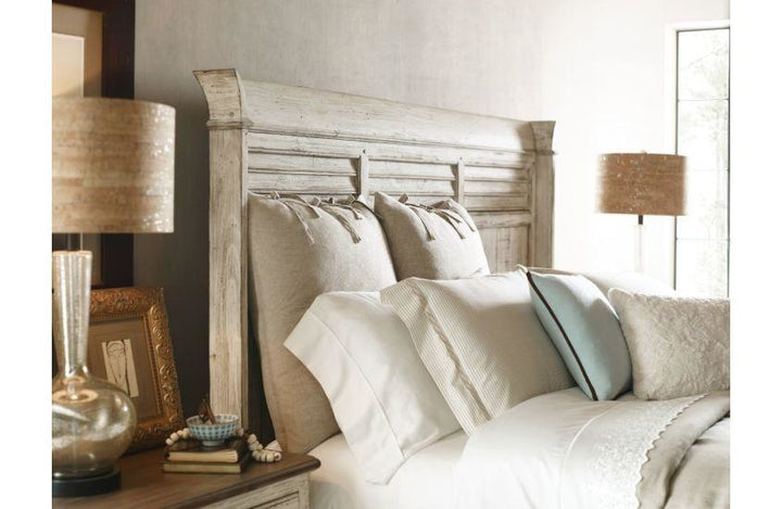In terms of scale, the Shelter Bed is the larger bed in the Weatherford collection. It is a great bed for adding depth to a large master bedroom with design elements like the shelter posts, framed solid wood panels, slatted panels and shaped top rail.