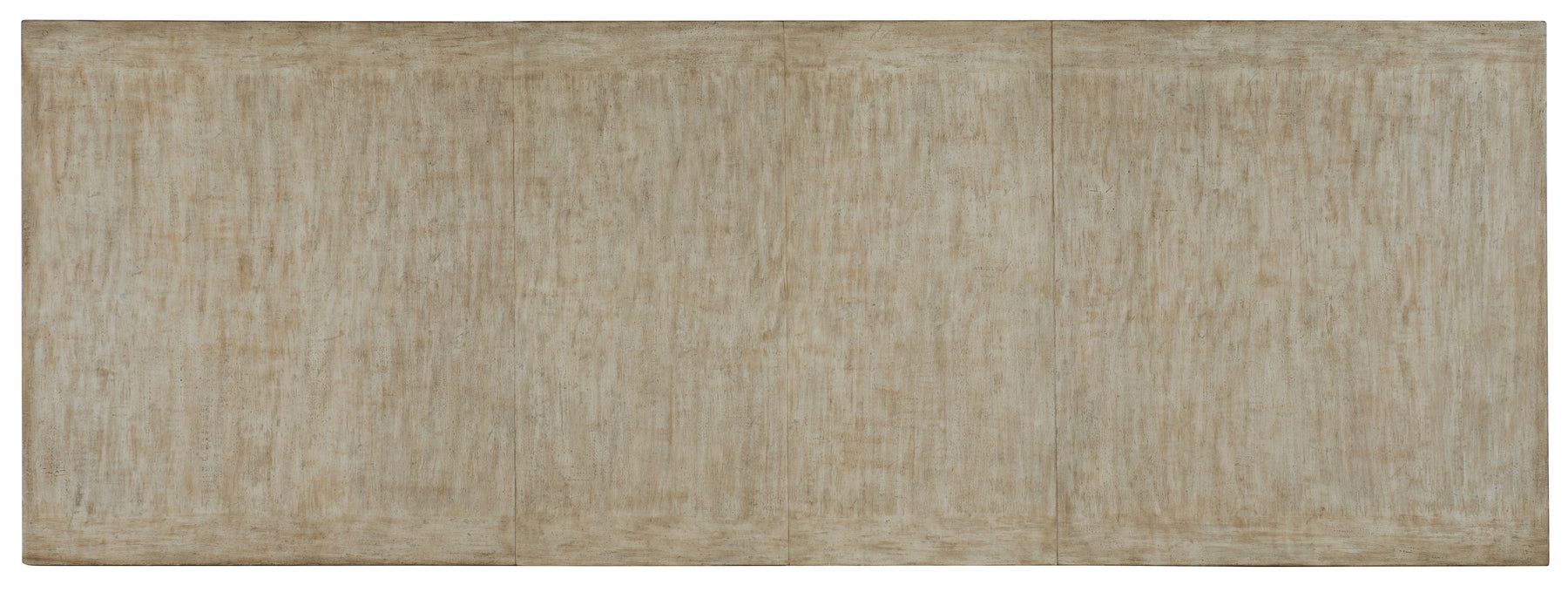 Enjoy a European farmhouse vibe as you gather around the charming Vittorio 80-inch rectangle table with an X- trestle base with a sliding stretcher. Gatherings can be intimate or large: the table will accommodate four side chairs and two arm chairs with no leaves, six side chairs and two arm chairs with one leaf, and eight side chairs and two arm chairs with both leaves used. Crafted of Oak Veneers with a solid-wood edge top, the Light Tusk finish is a taupe color with distressing, hand-planing and scraping for casual authenticity.