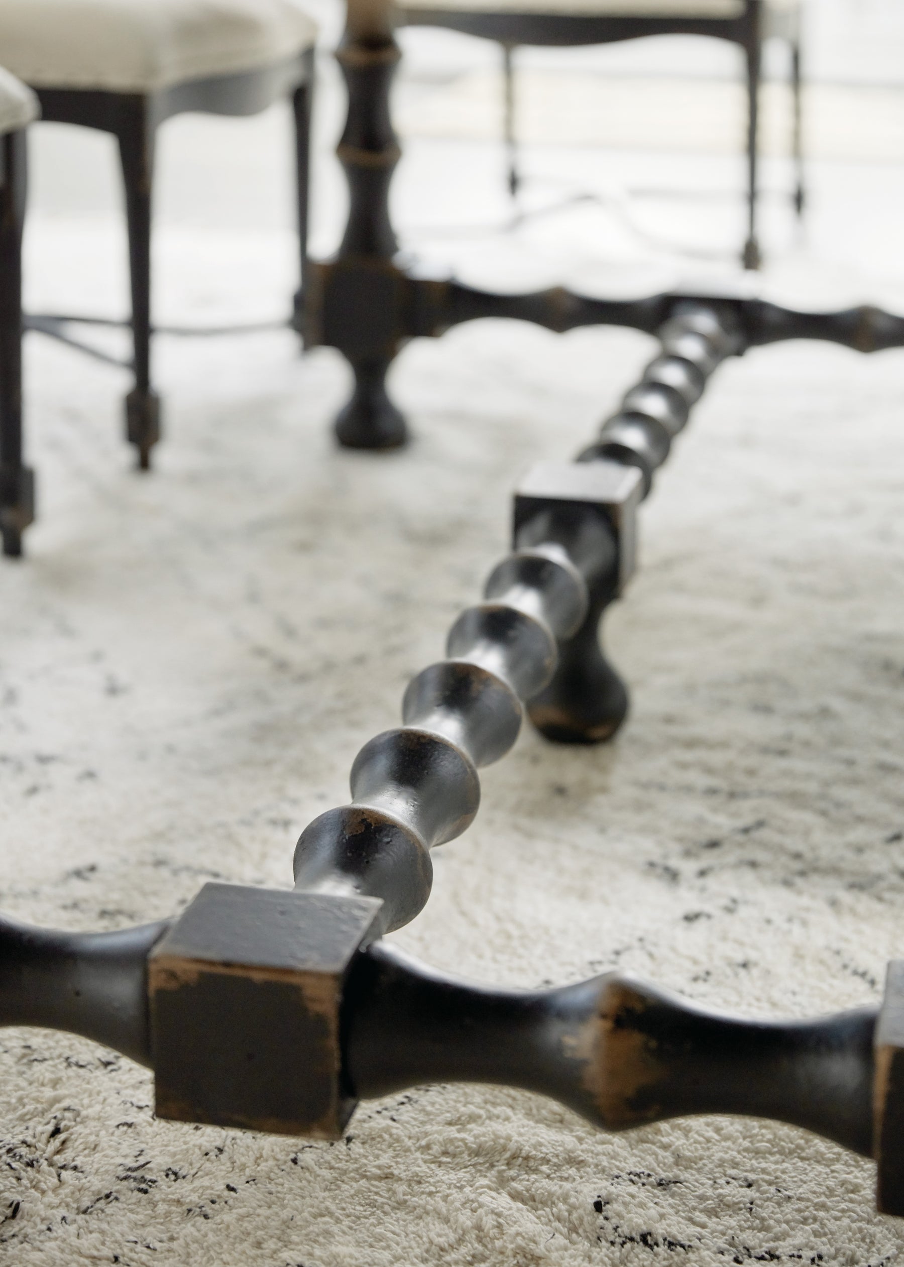 Be transported to a romantic, rustic Italian farmhouse as you dine around the Ciao Bella 84-inch Trestle Table. The base has turned legs and an exquisite black finish with hand-chiseling and wire brushing, and contrasts with a Flaky White top. The two 18-inch leaves extend the table to 120 inches, accommodating up to 10 guests. Beautifully crafted of Poplar Hardwood Solids with Pine Veneers.