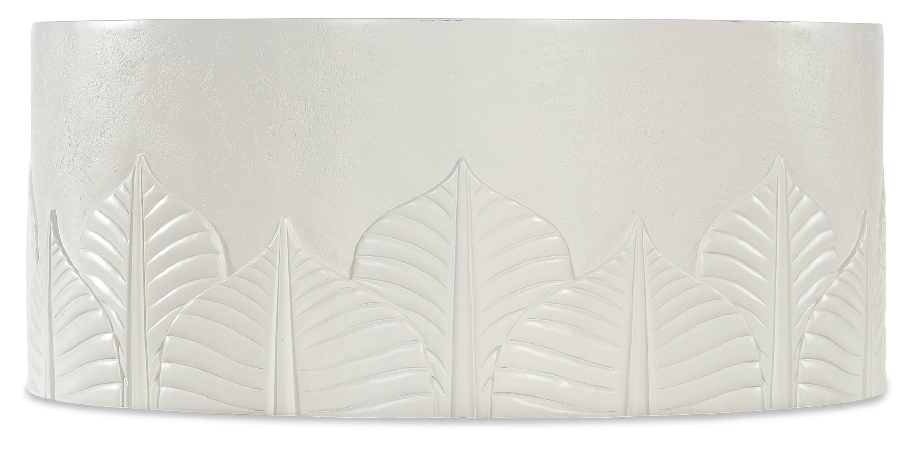 With its textured plaster finish and rounded form, the Amelia Round Cocktail Table offers a unique focal point for living rooms. The plaster-like finish is embossed with a leaf motif, giving the table an artisanal feel. The sturdy wood and resin construction ensures long-lasting use, while the built-in casters provide flexibility in arrangement. Its creamy white finish enhances modern and casual spaces alike.