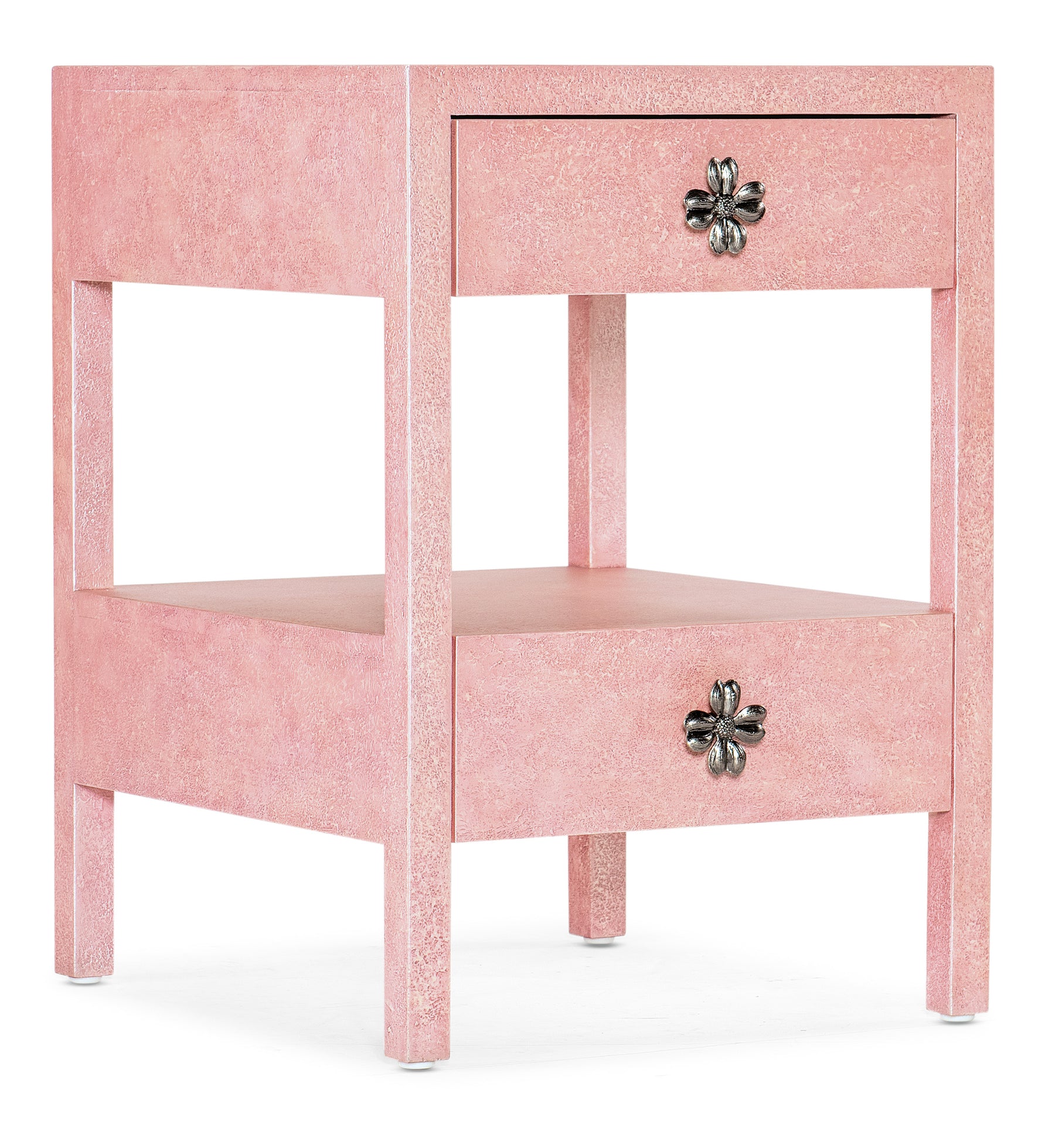 Part of the curated Susan G. Komen Collection honoring the spirit and resilience of those diagnosed with breast cancer, the Courage Accent Table features a signature textured pink finish. The antique pewter-colored floral motif hardware adds a touch of glam. The two drawers are lined with elegant pink interiors, and there’s a handy open storage space above the bottom drawer. A portion of the proceeds of each piece sold goes to benefit breast cancer research and awareness.