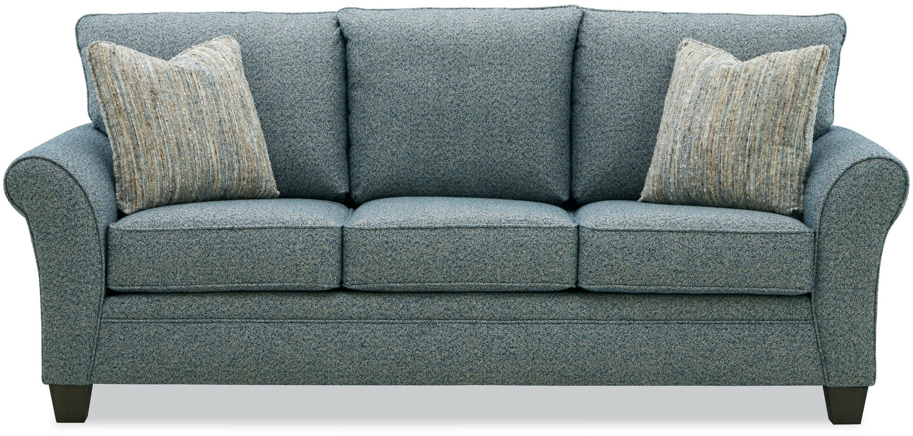 Easygoing and inviting, this casual welted sofa features rounded flare arms, cozy bed pillow-style backs, and sturdy block legs. Finished with two toss pillows, it’s the perfect blend of comfort and relaxed style. Also available are the matching loveseat, chair 1/2, ottoman