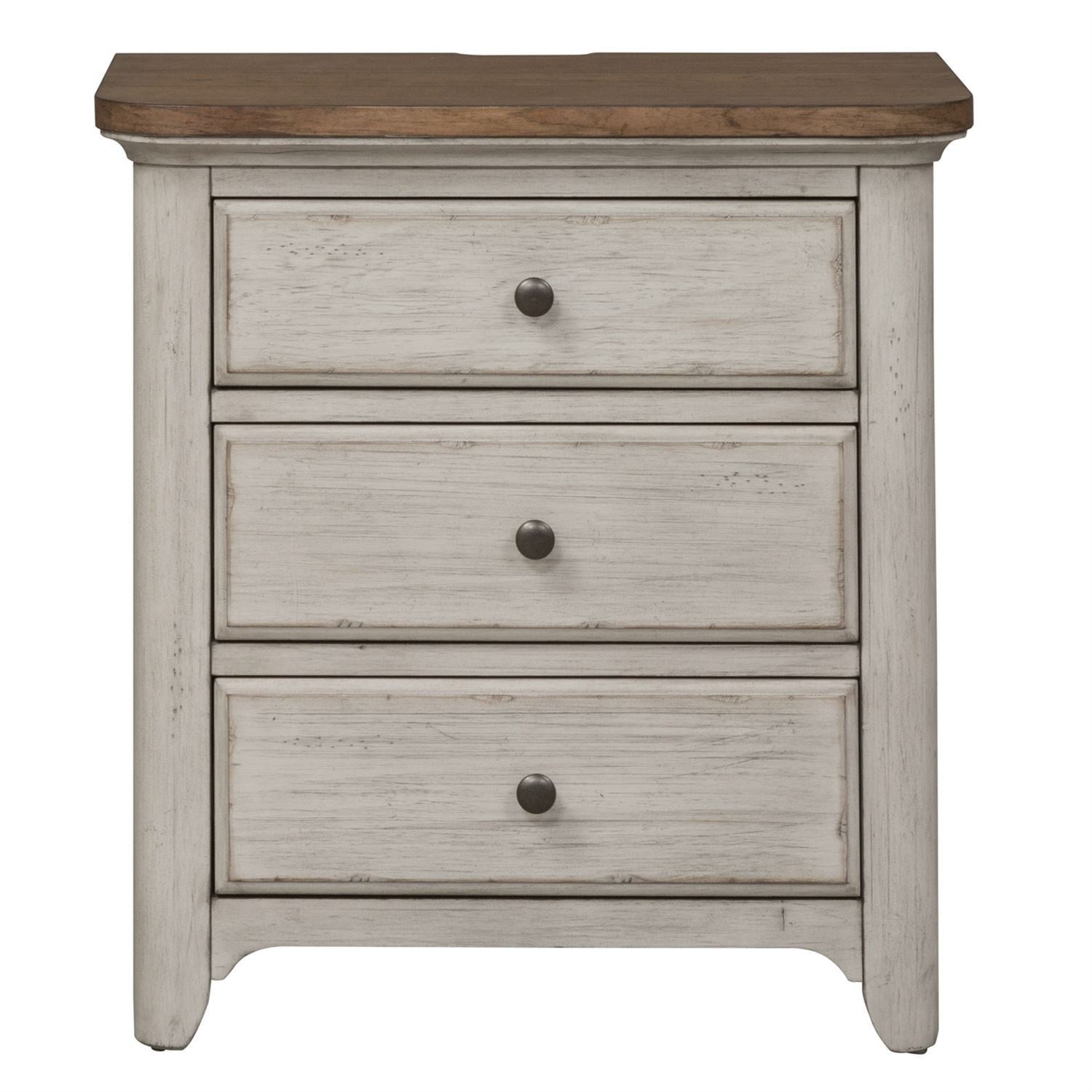 Finish:Antique White Finish with Chestnut Tops