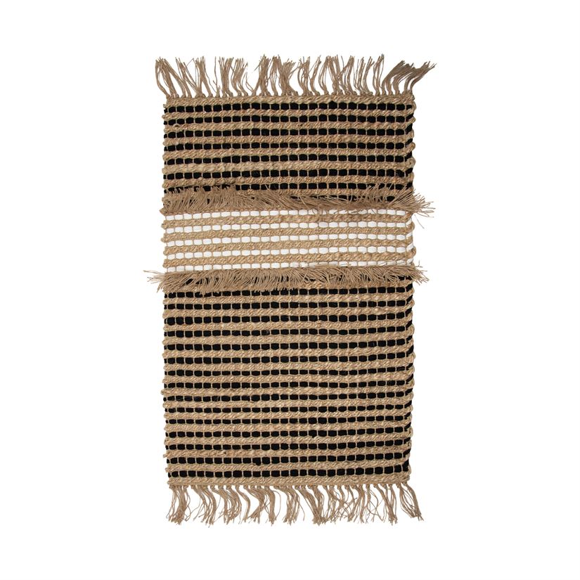Featuring beautiful jute fringes on either end, luscious earth tones, and hand woven detailing.