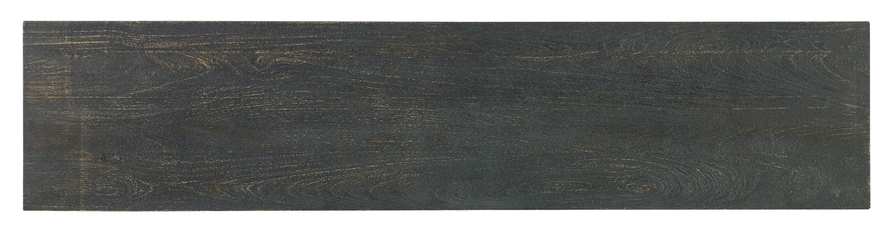 Neoclassic forms get a modern flair with the Dimensions Credenza. Crafted of Mango Solids in a black natural wood finish with a brushed pewter metal base, the piece has distinctive silver-colored iron clad door fronts in a diamond-like pattern. The 4 doors have soft-close hinges and touch latches with one removable shelf behind each pair of doors. The interior finish matches the outside of the case. A ventilated back panel and wire management makes the credenza media-friendly.