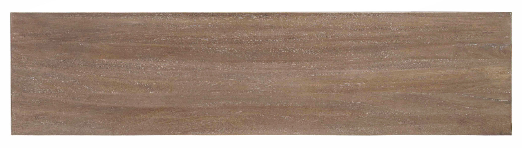 Enjoy clutter-free and stylish entertainment with this 72-inch console featuring charming louvered doors and a trend-forward dark natural casual finish. Offering wire management and storage for media and components, the console has four doors. The 2 center doors have 2 adjustable shelves behind, and the 2 outer doors have one adjustable shelf behind each. Accommodates up to a 70-inch TV.