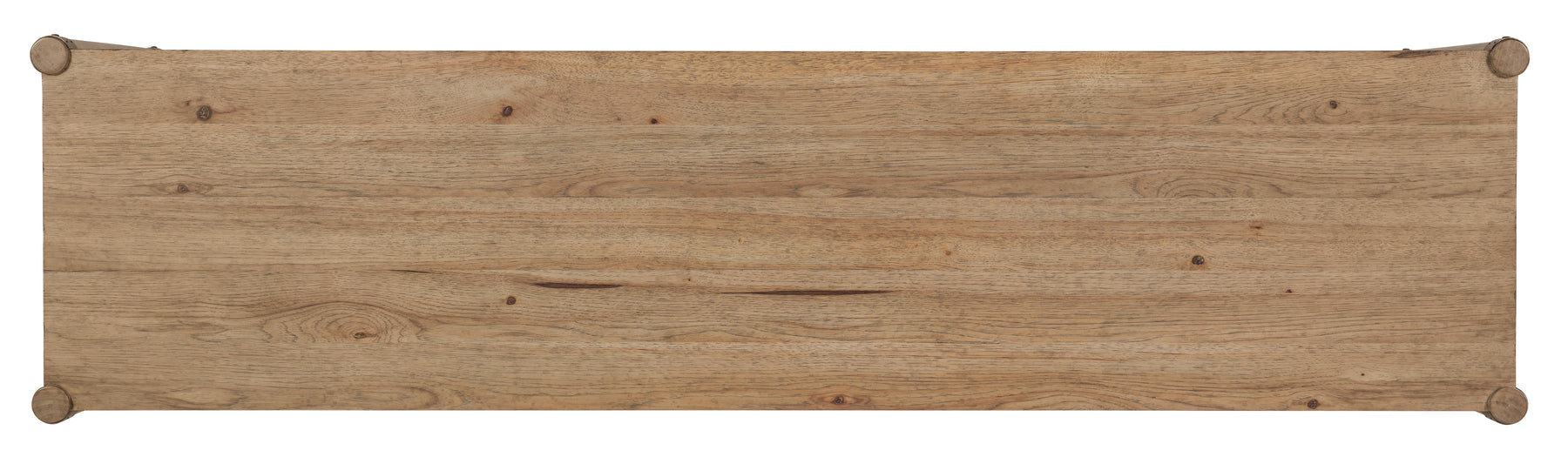 Capture the essence of the Napa Valley feeling with the Vineyard Row Entertainment Credenza. Combining Pecky Hickory Veneers with visible knots and rustic hammered metal accents, it is finished in the light-and-airy Sonoma hue. The credenza features 4 doors with soft-close hinges and magnetic catches, two adjustable wood shelves behind each pair of doors and a ventilated back panel and wire management behind each pair of doors. Accommodates up to a 75-inch TV.