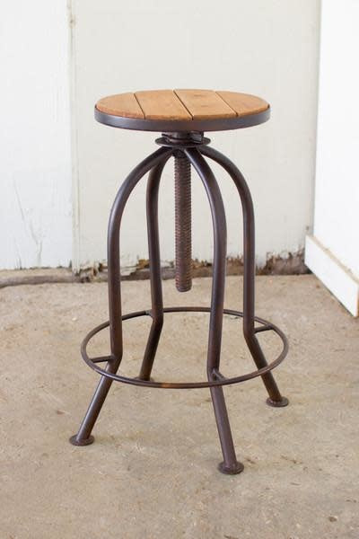 Adjustable Bar Stool With Recycled Wood - Rustic Finish