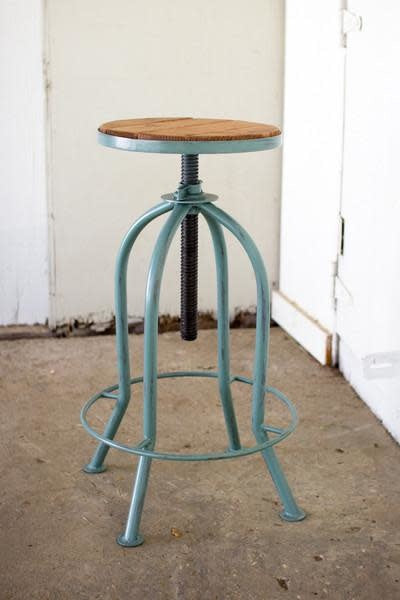 Adjust Bar Stool W Recycled Wood - Industrial Blue Finish