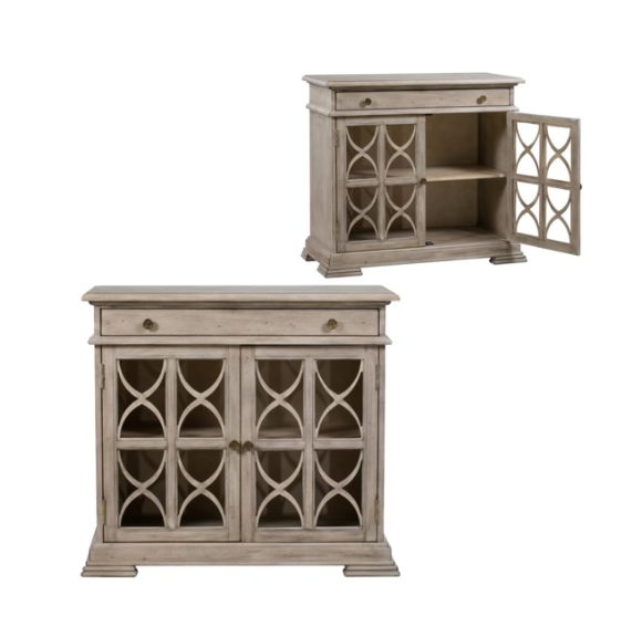 Hawthorne Estate 1 Drawer 2 Door Fretwork Cabinet Brushed Wheat Finish Dimensions: 40x17x37"