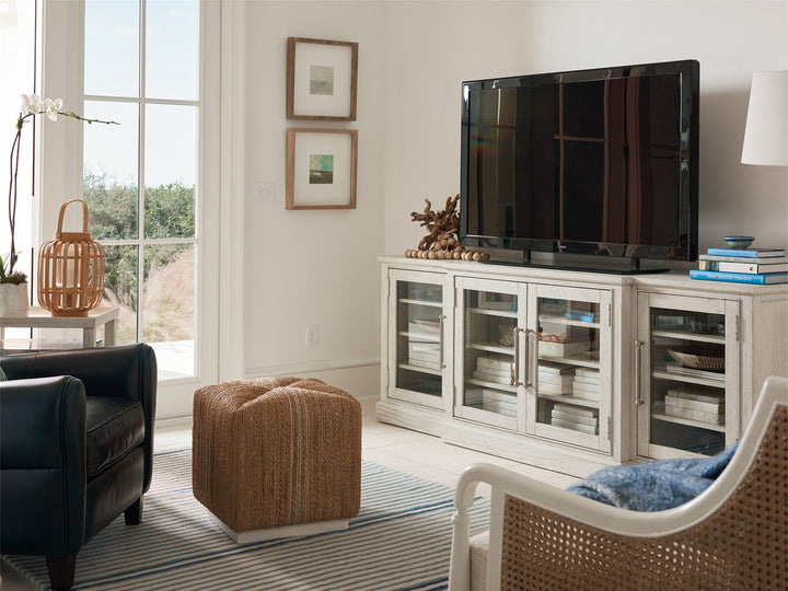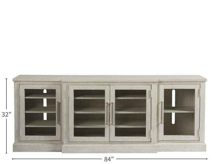 Outfitted with maximum shelving space within a gorgeously light silhouette, the Escape Entertainment Console marries the beauty of casual elegance with functionality, crafted with convenient adjustable shelving and wire management partitions. Available with wood or glass inset panels.