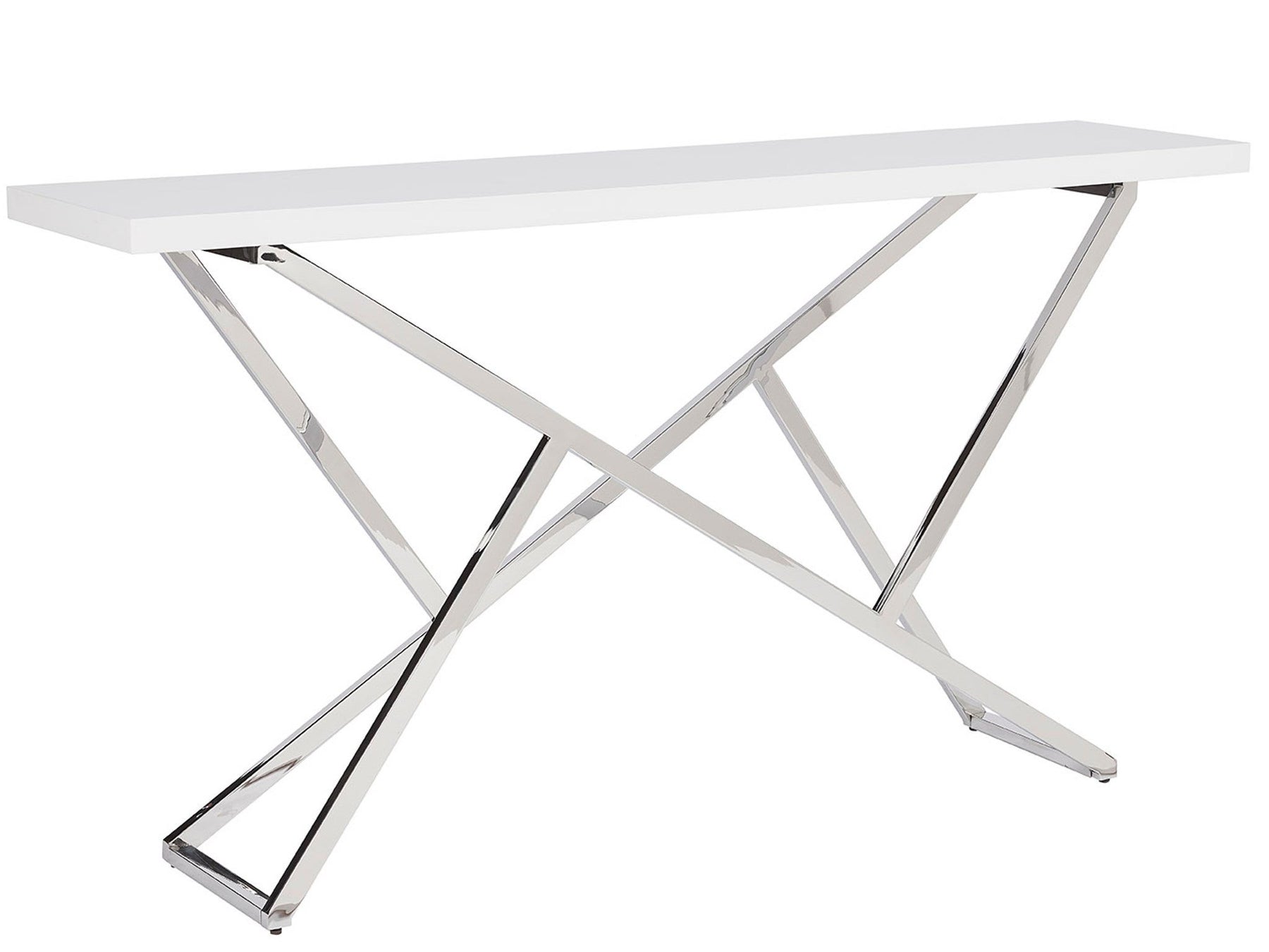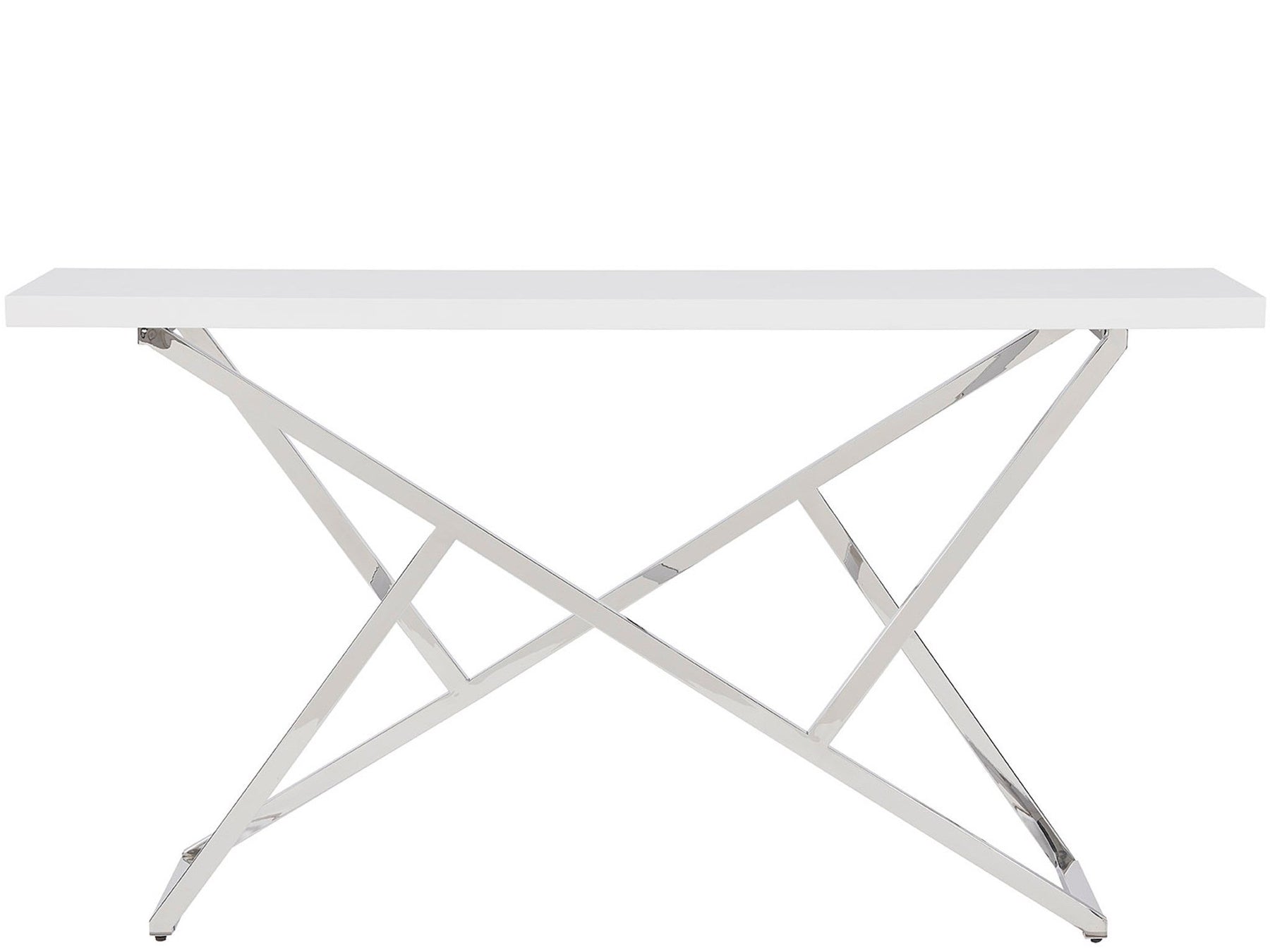 The Arlo Console features a simple white tabletop atop a series of intersecting geometric shapes in a cool silver finish, creating a lux furnishing perfectly suited for hallways, living rooms and more.
