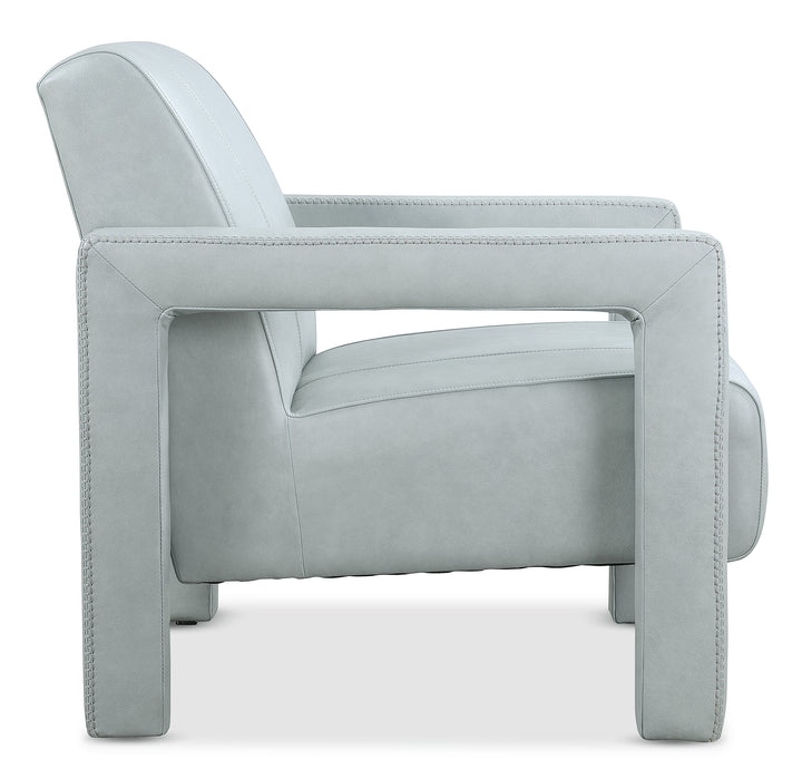 The Covette Accent Chair in Amani Arctic Blue is a modern masterpiece, featuring a fully upholstered open arm frame with ladder stitch detailing. Upholstered in semi-aniline top-grain leather, this chair offers both comfort and a bold style statement for contemporary living rooms or offices.
