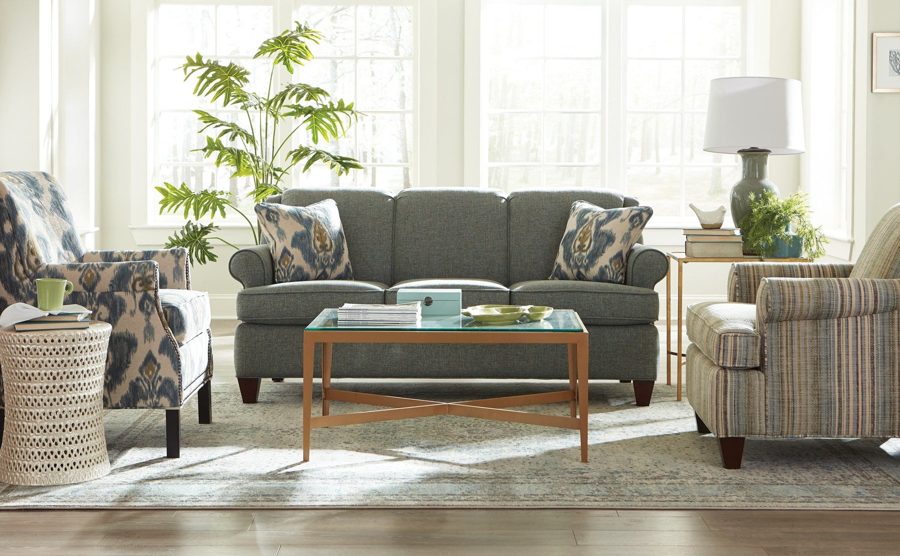 This classic sofa is simply a perfect fit. Measuring 73'' in length, it's a great choice for small spaces. It features a plush tight back and elegant curved wings, as well as a simple sock arm and tapered legs. Also available as a full size sleeper! Matching loveseat, chair and ottoman available as well.