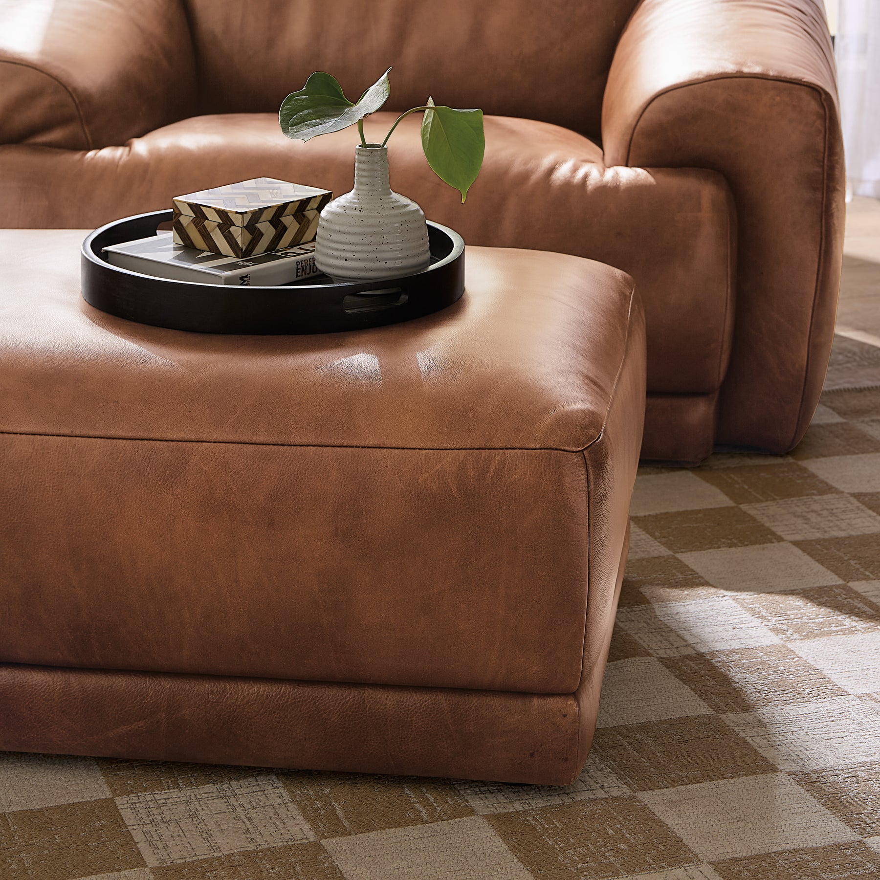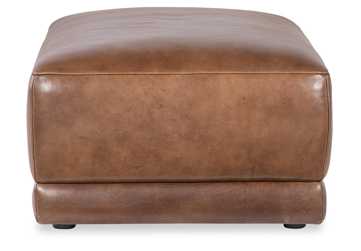 Plush, inviting and generously scaled, the Fleetwood Ottoman has a soft, rounded square shape and is covered in the sink-in-me soft aniline top grain leather Taupe. The ottoman measures 41 inches wide x 29 inches deep.