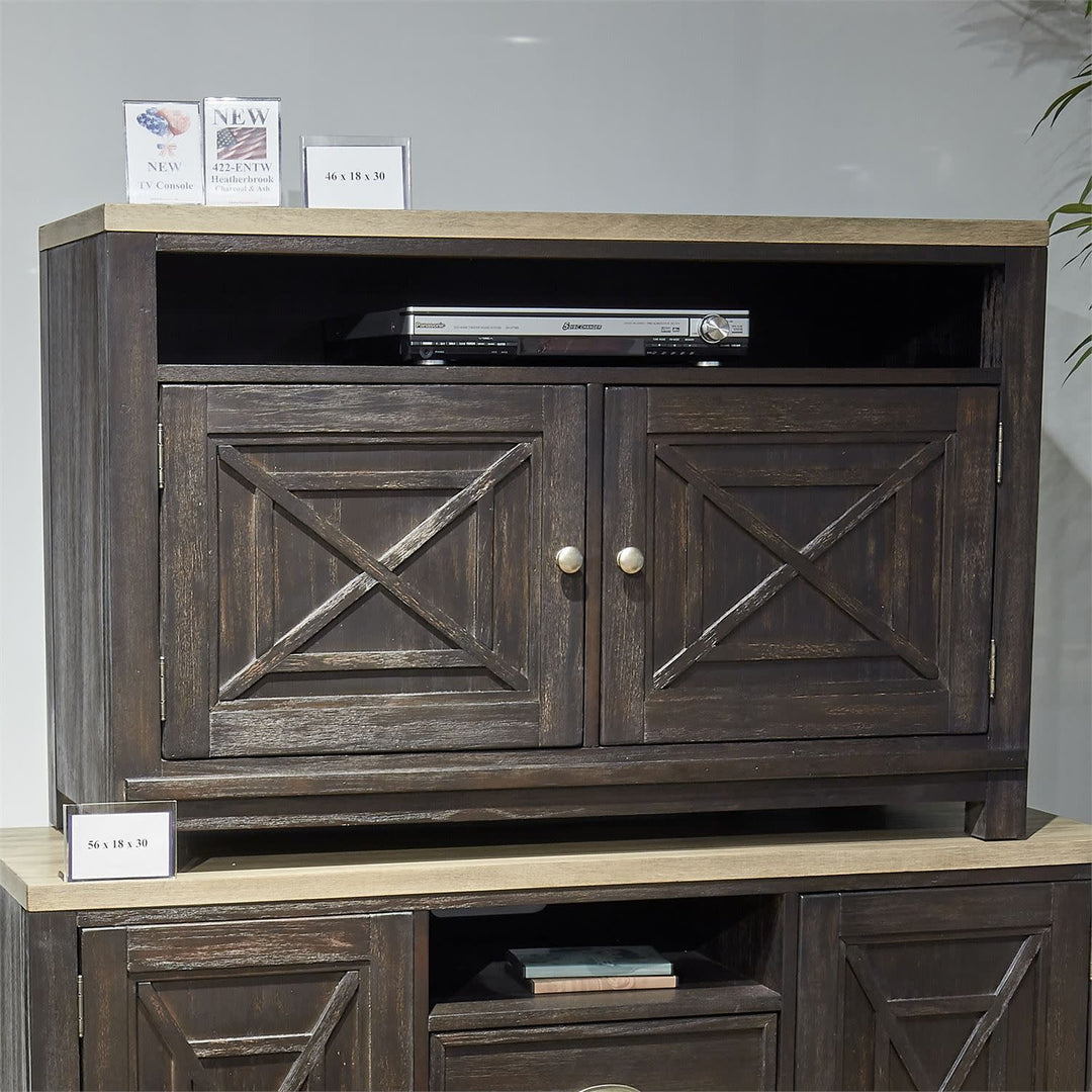 Perfect for casual interior living with charcoal and ask finish. This item features grid accents and antique pewter knobs and felt lined top drawers.