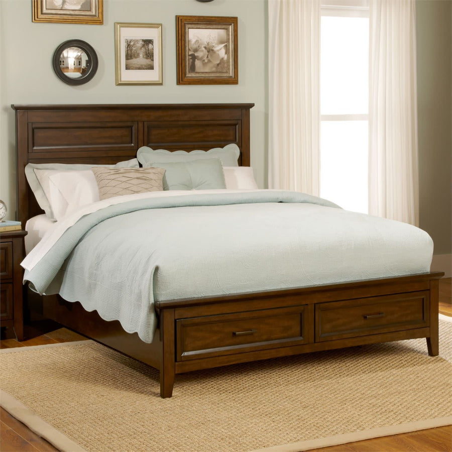 Comfortable styling with universal appeal. The framed paneling and a dark brown cinnamon finish make this an extremely versatile look.