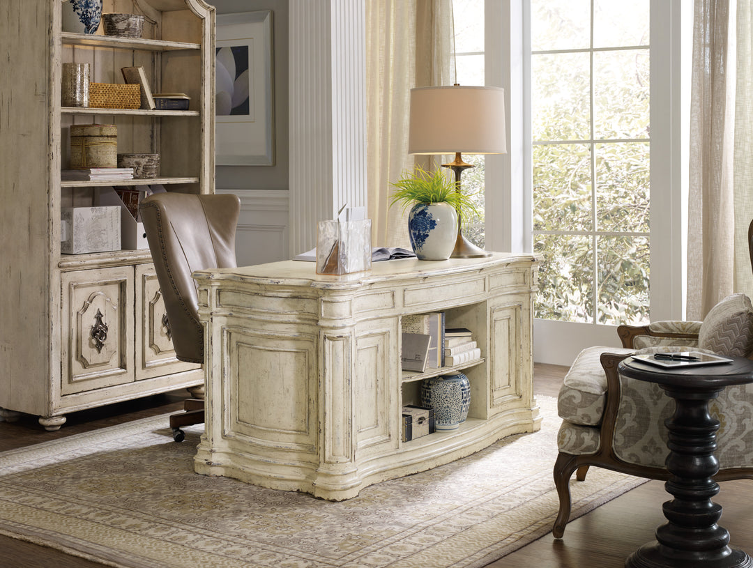 Chic in a clean and simple silhouette, the armless Lynn Executive Swivel Tilt Chair with casters flexes while you work to give you mobility to swivel, tilt and roll. Covered in the Caruso Falvo finished top-grain leather, the Lynn features vertical channels on the back, shaped wings and nailhead trim down the sides and seat. The base is in a Chestnut wood finish.
