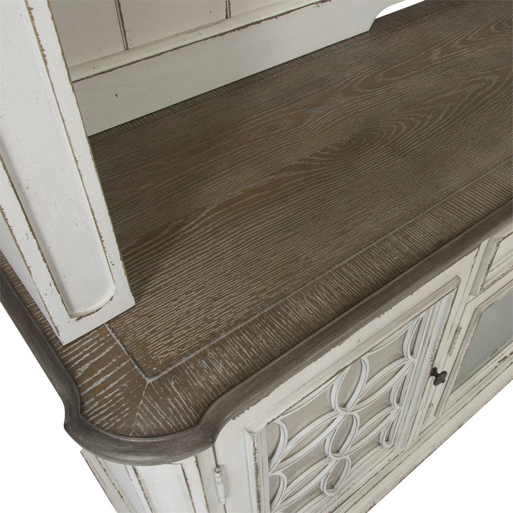 Blends of European influences makes this item truely unique for any living space. Warm antique finishes and artistic distressing along with grand scale a group to be passed to generations.