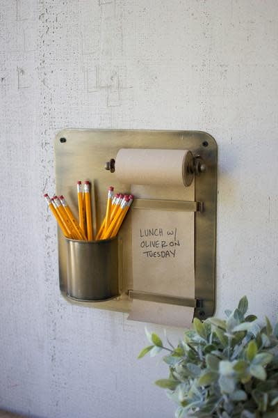 Note Roll With Antique Brass Wall Rack With Pencil Holder