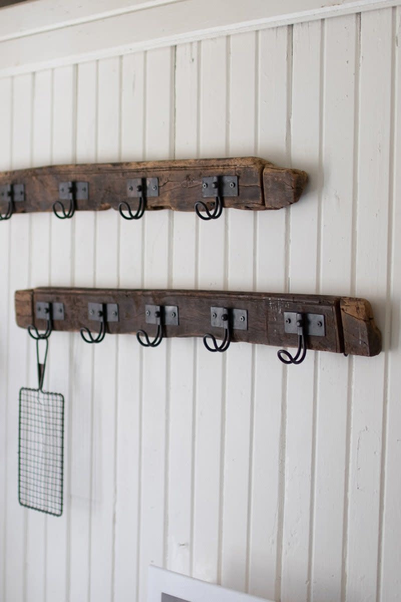 Recycled Wood Coat Rack With Five Wire Hooks