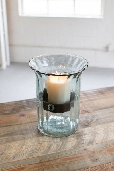 Ribbed Glass Candle Cylinder W Rustic Insert - Small