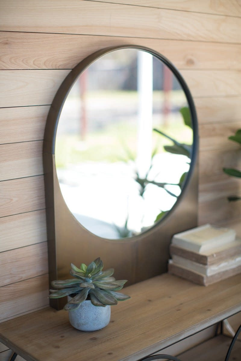 Round Antique Brass Finish Wall Mirror With Rectangle Base