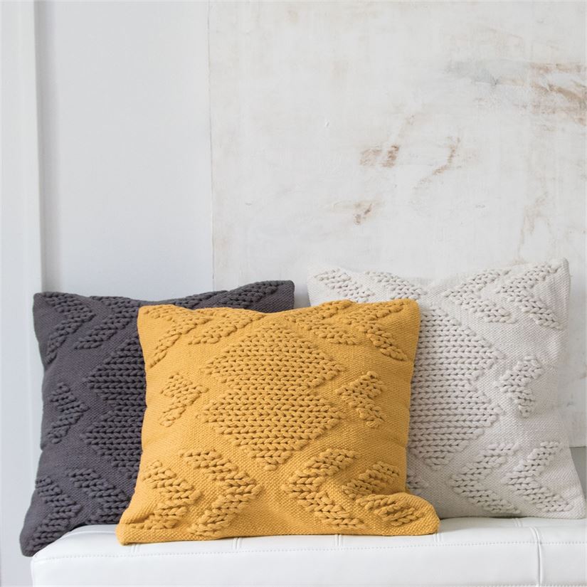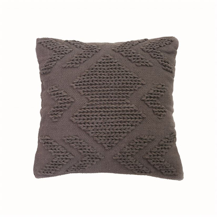 This wonderfully textured cotton pillow and its gorgeous geometric patterns are perfectly accentuated by the rich, deep charcoal color.