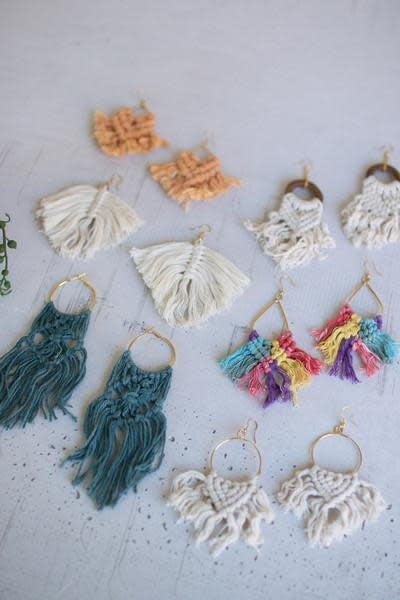 Set Of Six Antique Brass With Woven Cotton Earrings