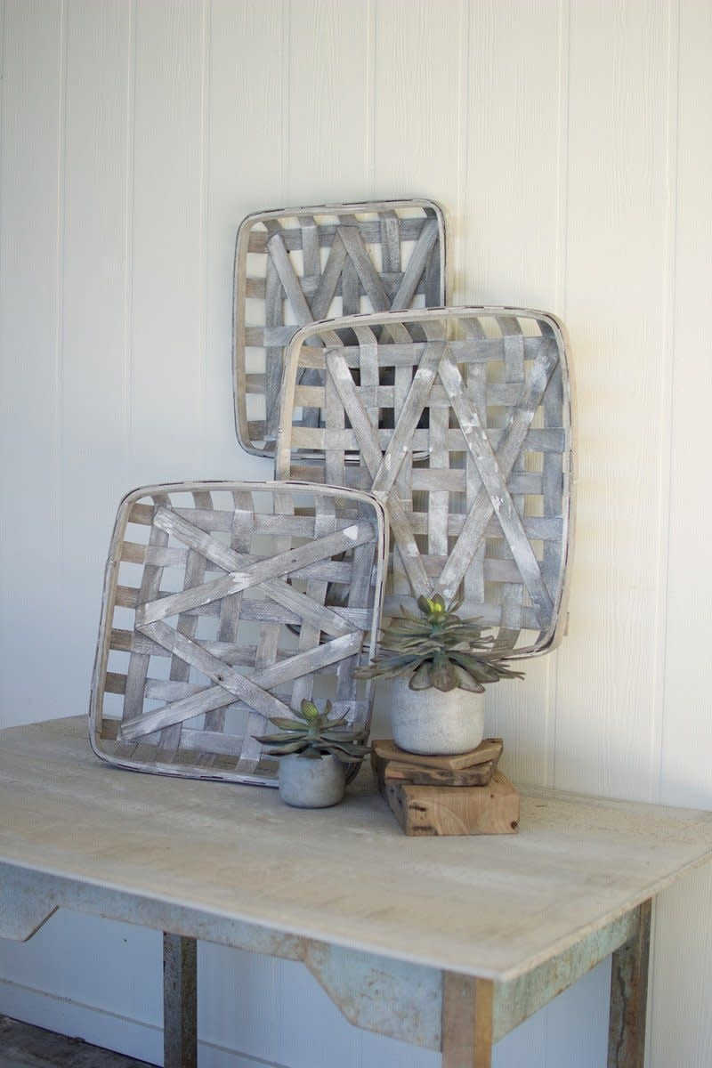 Set Of Three Grey Wash Square Woven Split Wood Baskets