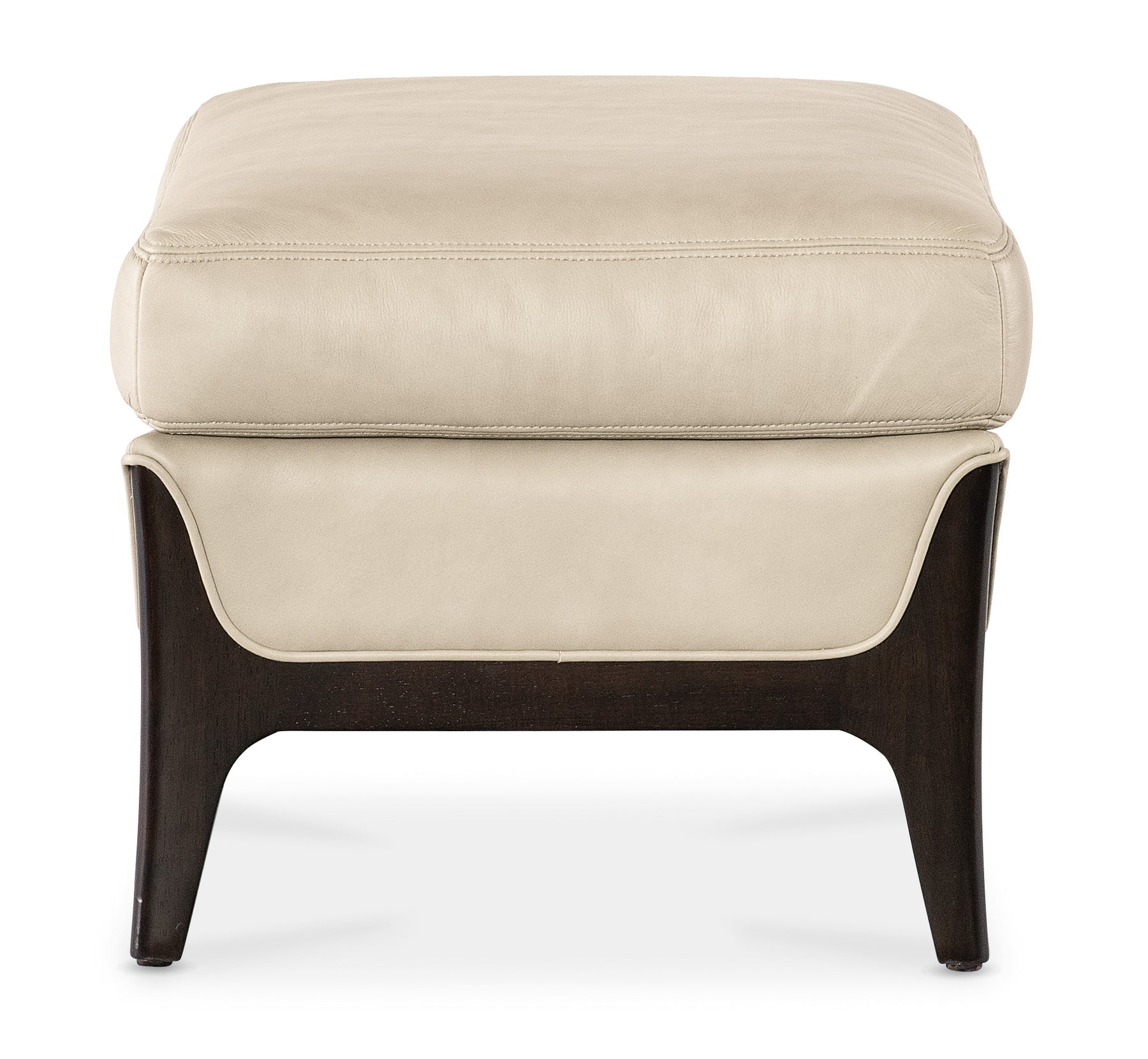 The perfect companion for the Sophia Chair or Sofa, the Sophia Ottoman is the epitome of mid-century elegance with an updated design. The ottoman has flared wood legs and frame finished in the deep translucent tone of Caviar on rich Cathedral Cherry Veneers. Sophia is upholstered in the luxurious Aline Stonewash semi-aniline leather with topstitch and welt trim.