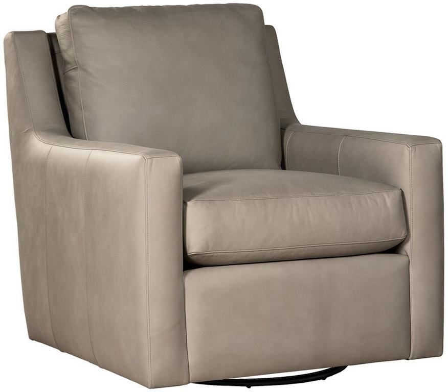 A modern leather swivel glider with a fresh design and amazing comfort! It features a Blend Down Coil seat cushion, track arms and a semi-attached back pillow. Also available as a swivel chair (no glider) using style number L072610BDSC.